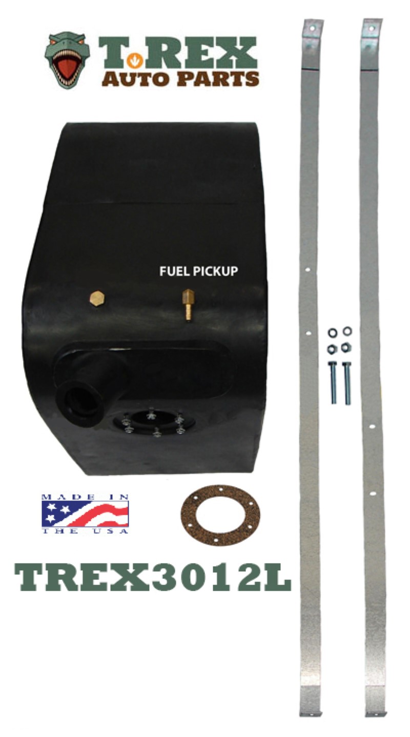 1961-1971 International Scout 12 gallon left side plastic tank. Includes pickup tube, mounting straps, and sending unit gasket. Does not fit Scout 80 before serial #FC35340. Dimensions 19"(tall) x 17½" (deep) x 10" (wide).
