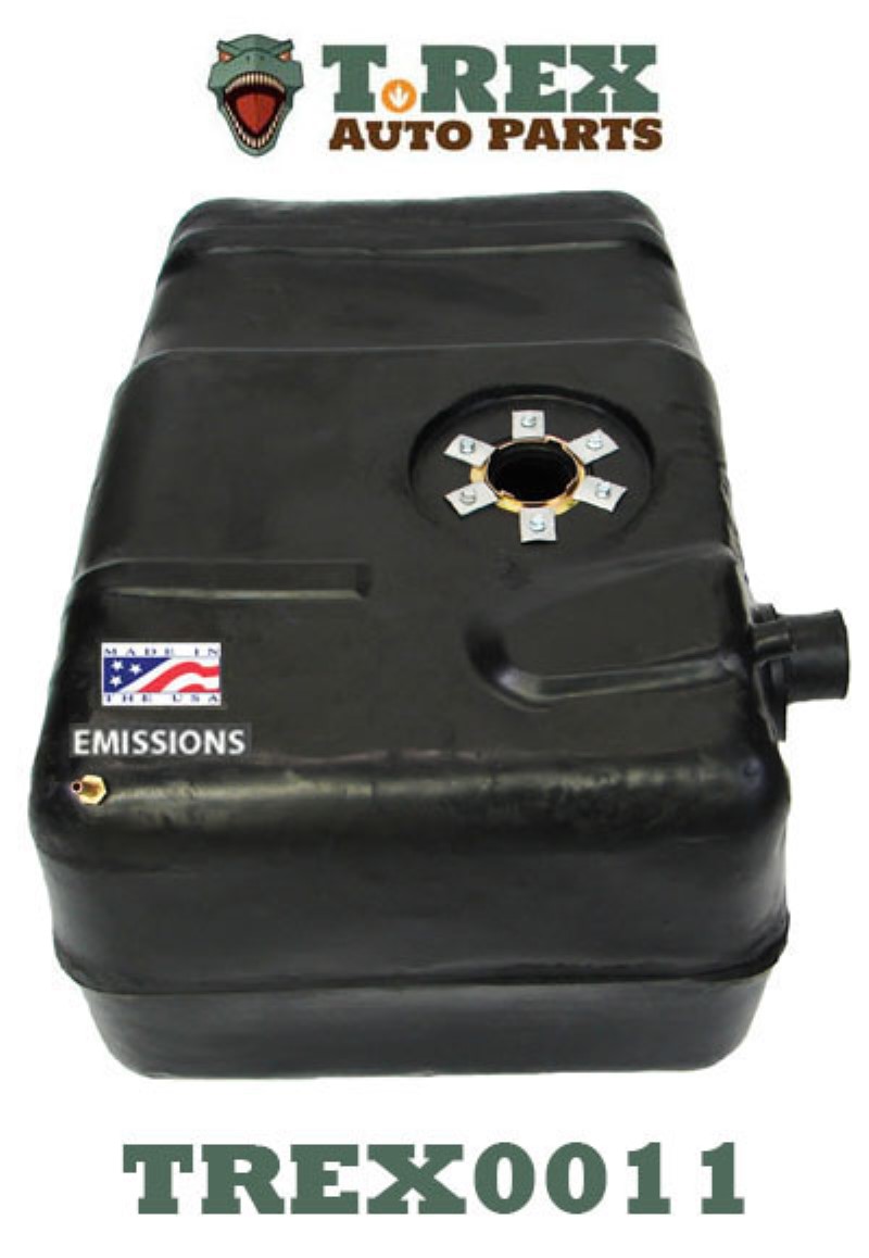 1962-1977 Jeep Gladiator/J-Series Pickup 18-Gal. gas tank with the 2 1/4" (large) fuel filler and 3/4" vent necks on the side of the tank. Includes a new lock ring and a new gasket.