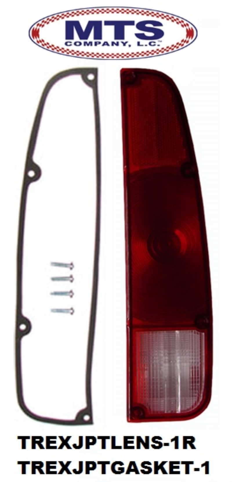 1973 1/2-1987 Jeep J-truck "Right -- Passengers side" tail light lens with gasket and 4 screws. Replaces # 988112.