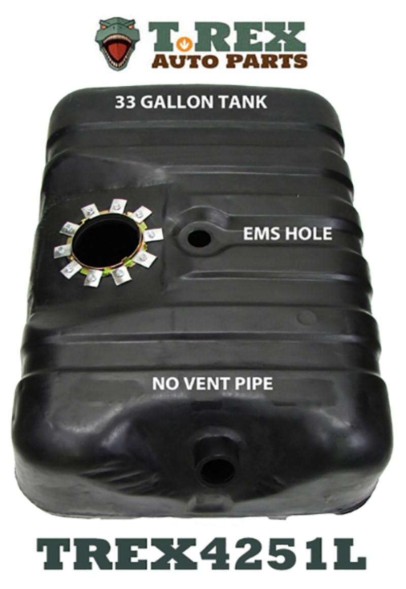 1985-1996 Ford Full-Size Bronco 33-Gal. fuel tank.This tank has an emission valve/rollover hole but it does NOT have an internal support vent pipe. The sending unit hole is approx. 2" in diameter. Includes a new lock ring and a new gasket. Approx. dimensions: 21" x 31" x 15". Replaces #'s: F0TZ-9002-D. UPC #: 810160410713.